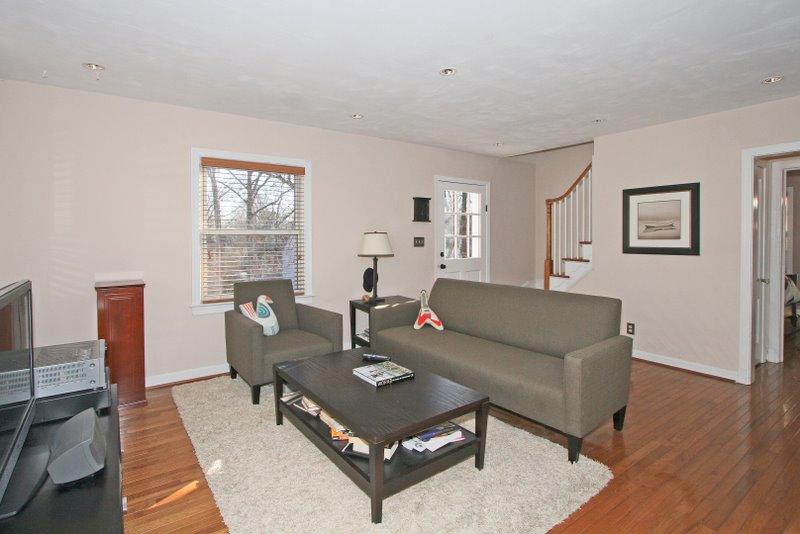 home that has an open floor plan which is enhanced by gleaming hardwood flooring